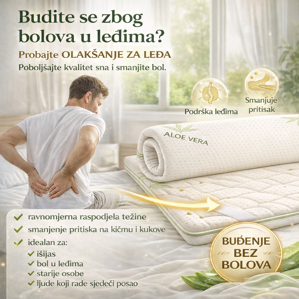Posebna struktura nadmadraca omogućava ravnomjernu raspodjelu težine, smanjujući pritisak na kičmu, leđa i kukove. Aloe Comfort Pro 4+1 pomaže kod bolova u leđima, ukočenosti i išijasa, te je savršen izbor za starije osobe i ljude koji provode mnogo vremena sjedeći, omogućavajući buđenje odmorno i bez nelagode. ✨ čistoća ✨ zdravlje ✨ luksuz